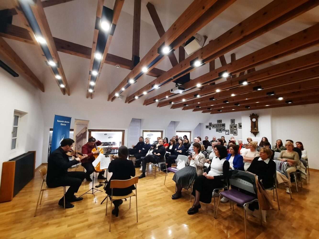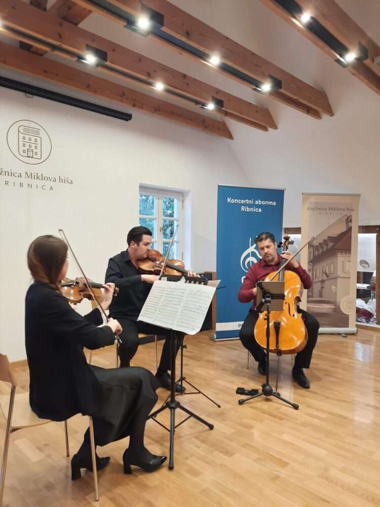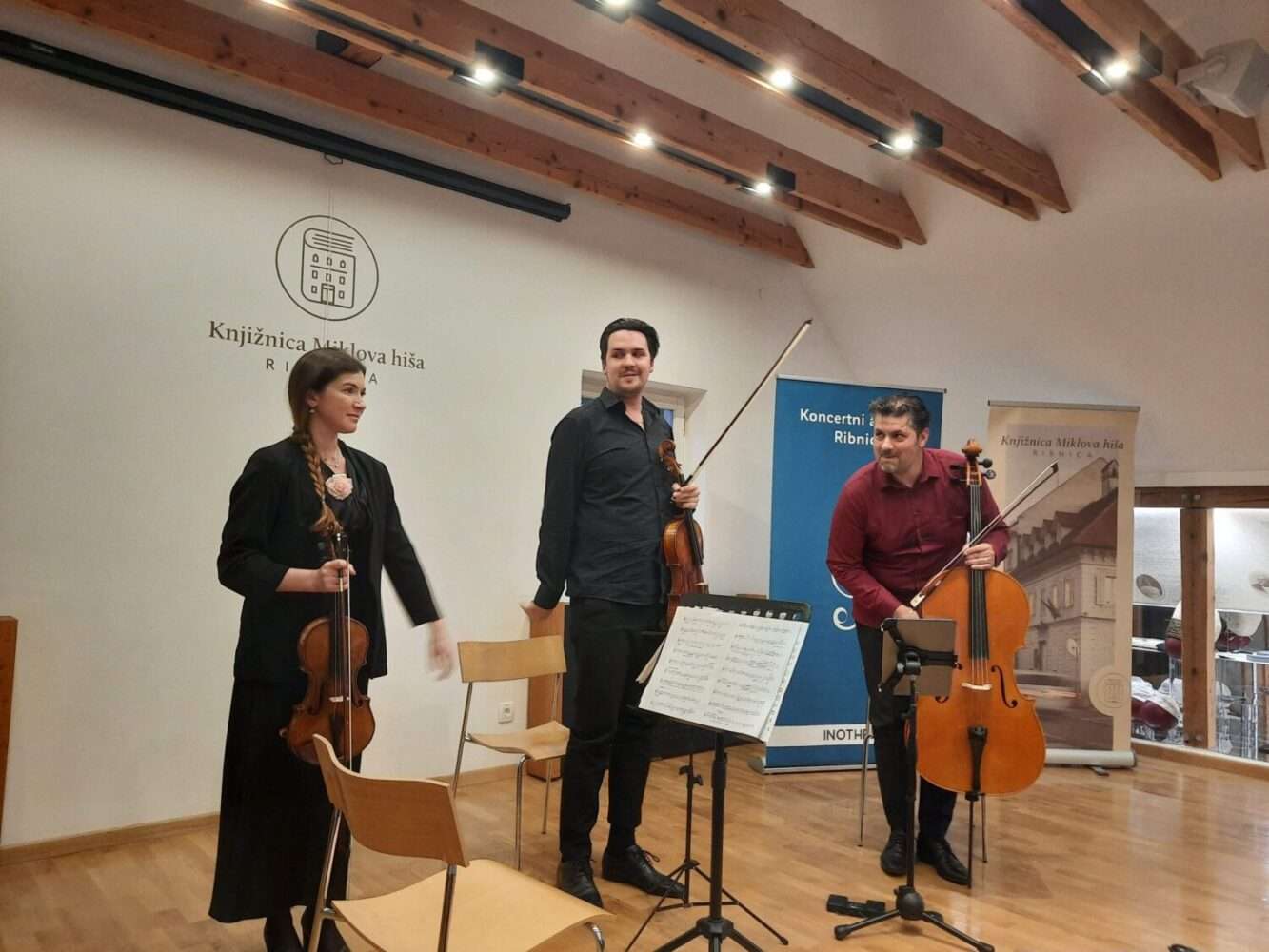 Literarnemu večeru je sledil koncert komorne glasbe Godalnega tria, ki ga sestavljajo akademski glasbeniki Vivijana Rogina, Petar Njegovan in Gorazd Strlič,, z vrhunsko glasbeno interpretacijo skladateljev 19. in 20. stoletja E. von Dohnányija, L. Rančigaja in J. Françaixa.