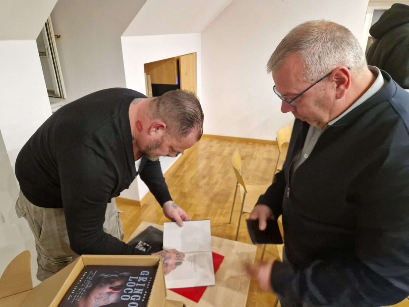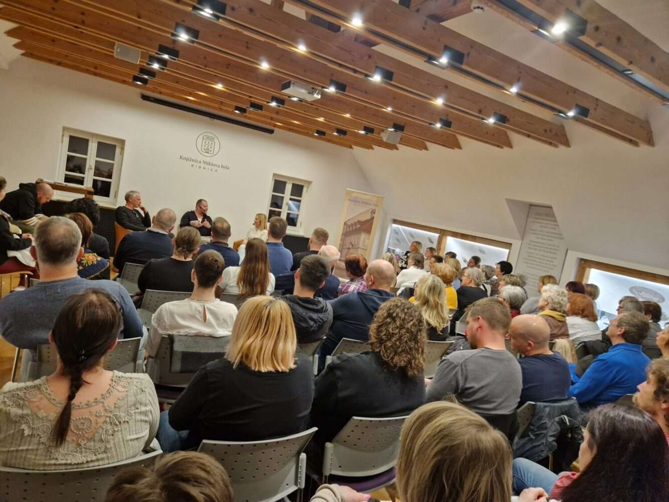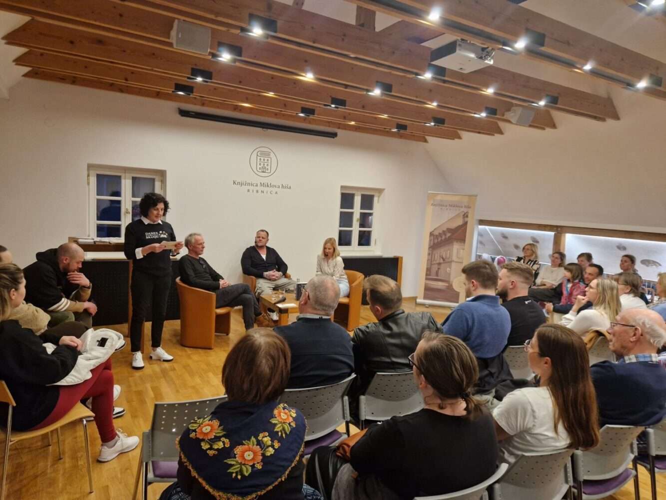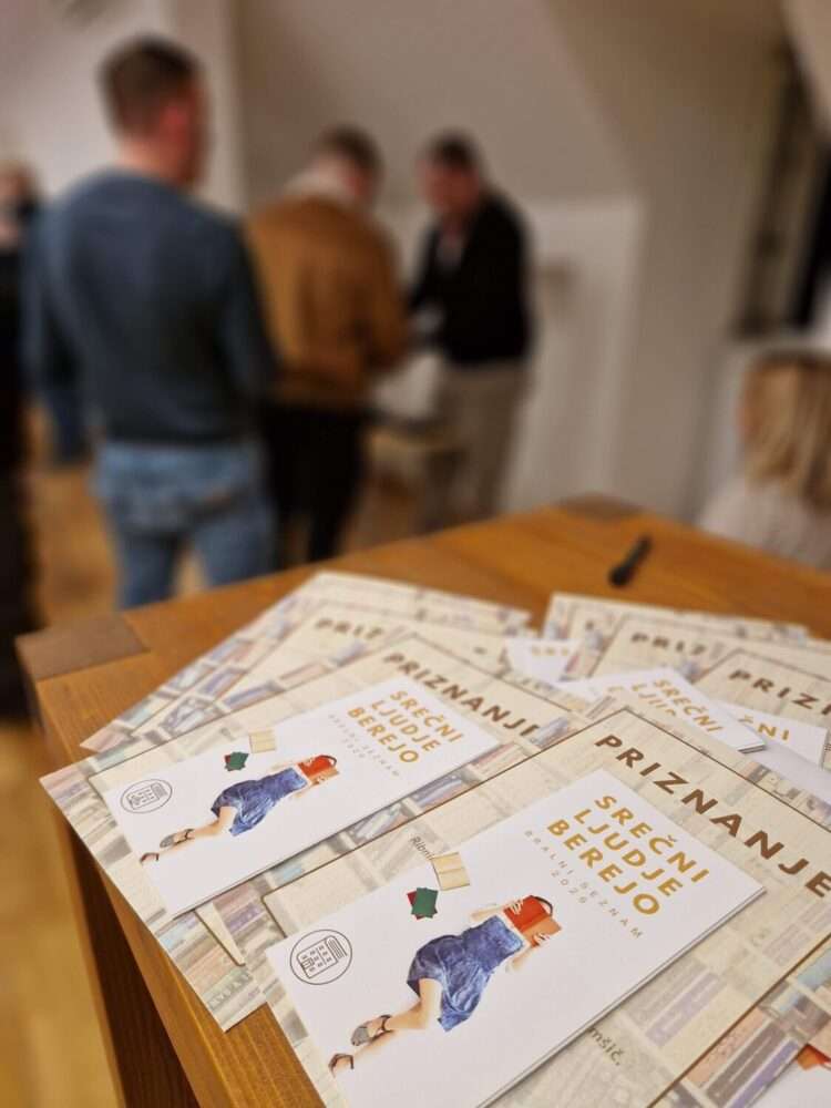Bralno akcijo Srečni ljudje berejo 2025 smo zaključili z literarnim pogovorom v torek, 3. marca  2026. V goste smo povabili Simona Domo in Aleša Čara, ki sta v pogovoru z Marušo Novosel predstavila knjižno uspešnico Gringo Loco. Izjemno zgodbo o tem, kako je Simon Doma pristal v Los Tequesu, najbolj krutem zaporu v Venezueli, in kako je tam (pre)živel, je Simon predstavil na sproščen in duhovit način, z namigom, da morda lahko pričakujemo tudi ekranizacijo zgodbe. Polna dvorana, v kateri obiskovalcem ni manjkalo vprašanj, pa je pričala o večeru, ki se ga bomo zapomnili. Vsem tridesetim prejemnikom priznanj ob zaključku bralne akcije iskreno čestitamo!