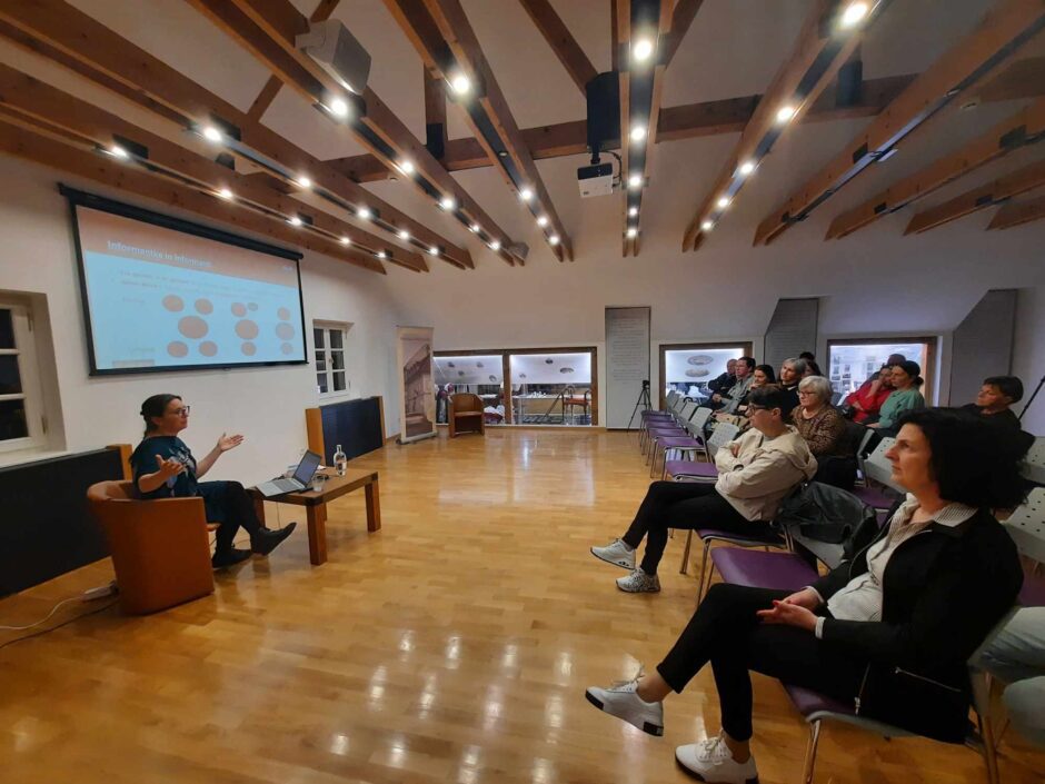V torek, 15.4. 2025, je v Miklovi dvorani potekalo zanimivo predavanje doc. dr. Maja Bitenc, raziskovalke na Oddelku za slovenistiko Filozofske fakultete Univerze v Ljubljani, o prehajanju od narečja k splošnejšemu pogovornemu jeziku govorcev iz Ribnice, ki se vozijo v službo v Ljubljano.  V sklopu projekta je proučevala njihovo jezikovno prakso, predvsem prehajanje od narečja k splošnejšemu pogovornemu jeziku, ter z njimi izvedla poglobljene intervjuje, v katerih je obravnavala socialnopsihološke teme, kot so jezikovna stališča, povezava med jezikom in identiteto, izkušnje z jezikovno rabo, jezikovna ideologija, jezikovni stereotipi in predsodki. Obiskovalcem predavanja je predstavila izsledke, ki jih je zbrala tekom raziskave.