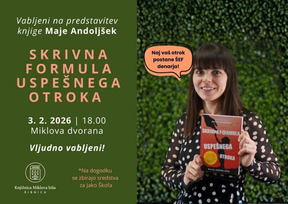 Knjižnica Miklova hiša vabi na predstavitev knjige Maje Andoljšek: Skrivna formula uspešnega otroka.